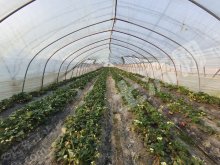 该地块位于庐江县泥河镇,面积50亩,地租:600元/亩年,其中葡萄地约30亩,草莓地约5、6亩,黄桃、大樱桃占地十几亩。